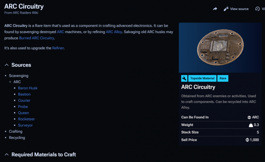 Recycling: If you have surplus ARC Circuitry, you can recycle it into 2 ARC Alloy, which is another useful material for crafting. This is a good way to clear up space in your inventory if you need to make room for more important resources.
