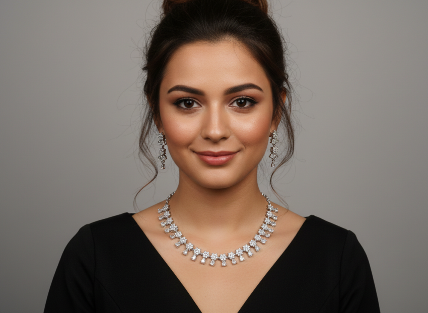 American Diamond (AD) jewellery is designed to replicate the brilliance of real diamonds. These necklace sets are crafted with precision, offering a sparkling finish that enhances any outfit. With their growing popularity, AD jewellery has become a must-have for women who want stylish and elegant accessories without spending a fortune.