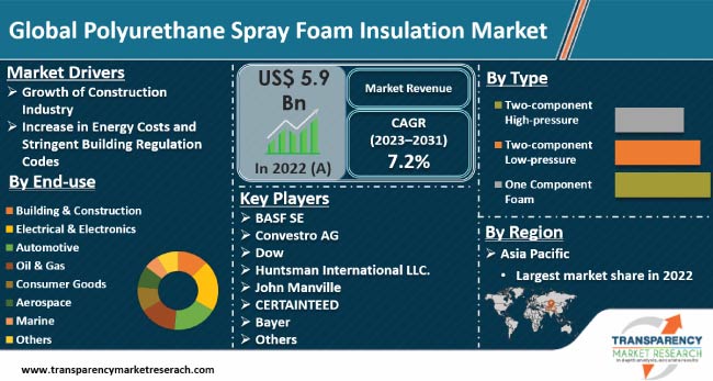 As the global construction industry pivots toward net-zero carbon emissions, the demand for superior air-sealing and high thermal resistance has propelled spray foam to the forefront of the insulation sector. Valued at US$ 5.9 Billion in 2022, the Global Polyurethane Spray Foam Insulation Market is projected to reach US$ 11.0 Billion by 2031, expanding at a robust CAGR of 7.2%.